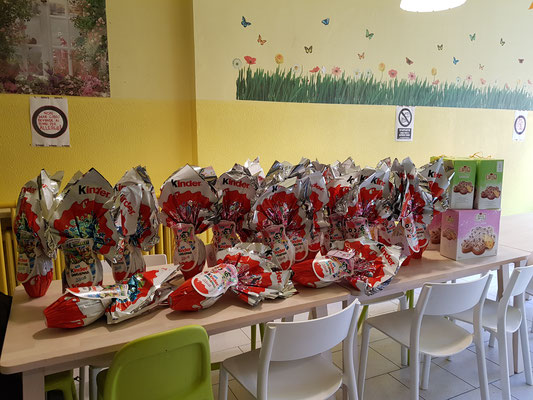Una mattinata intensa perché in comunità si respira un’aria di serenità, gioiosa, da famiglia… quella famiglia che molti bambini non hanno potuto avere, per diversi motivi. Ci siamo commosse davanti a quelle braccine tese dei bimbi incuriositi, che volevano essere presi in braccio da noi “nuovi amici”, o davanti a qualche piccolo gesto timido e più riservato ma pur sempre una tenera manifestazione di affetto. Abbiamo sorriso davanti all’entusiasmo e alle esclamazioni di gioia dei bambini davanti al tavolo dove facevano bella mostra le uova di cioccolato. Abbiamo intonato con loro e con i volontari della Protezione Civile, i canti pasquali sotto la coinvolgente direzione di Suor Carla, energica e amorevole responsabile della comunità. Le emozioni provate sono state intense e hanno lasciato in ognuna di noi una sensazione di serenità al di sopra di un velo di tristezza al pensiero che questi piccoli, così piccoli, hanno già dovuto conoscere i lati meno belli della vita. Ma qui sono accolti come in una vera famiglia.